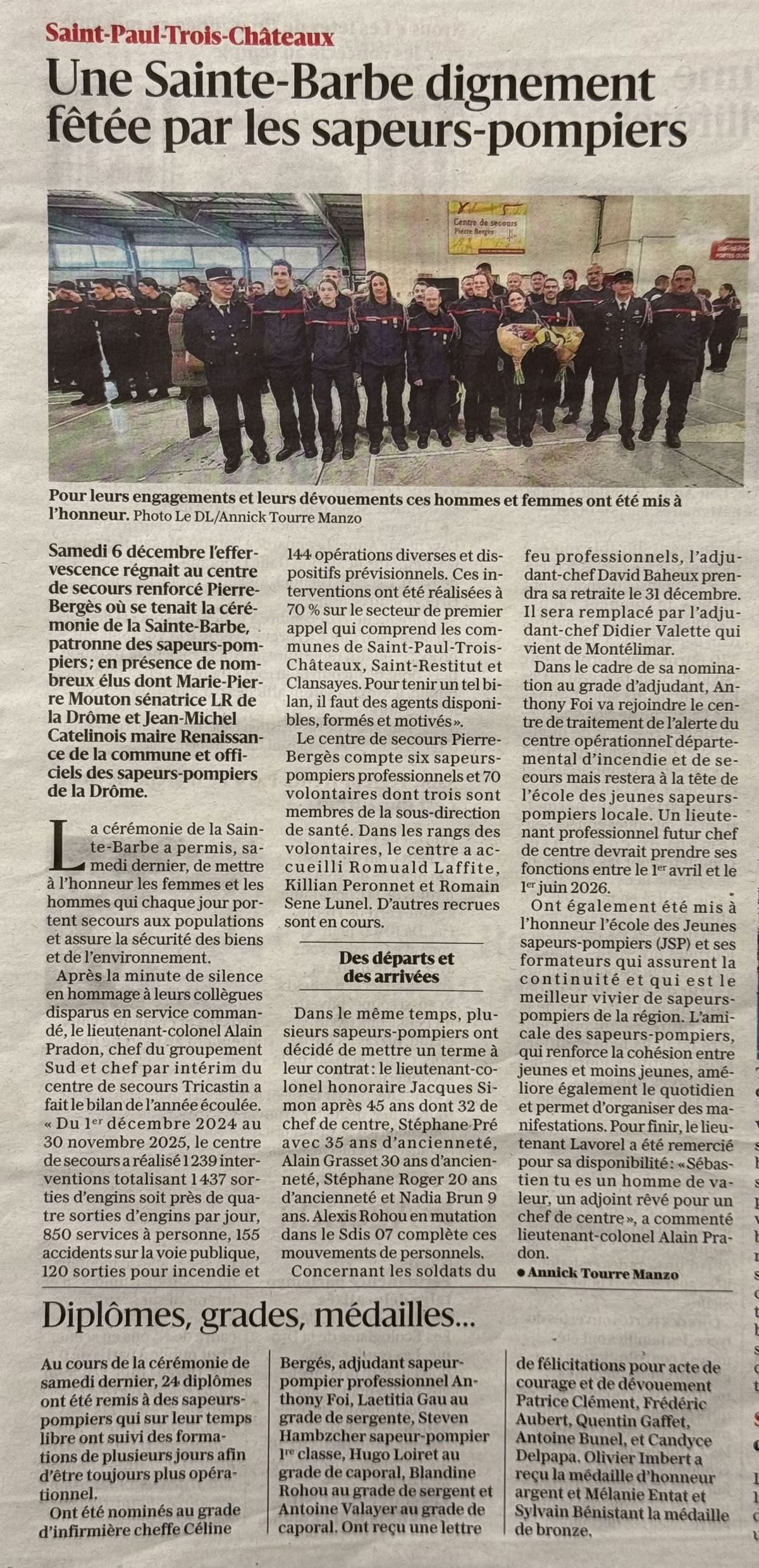 Pour rappel, il y a 21 ans, en 2004, le JSP Sébastien Busmey, avait lui aussi remporté le titre de champion de France, dans la même catégorie, même épreuve. L’histoire se répète, pour le plus grand plaisir des pompiers tricastins.
